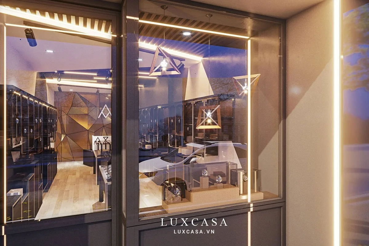 Phối cảnh bố trí mặt bằng showroom đồng hồ