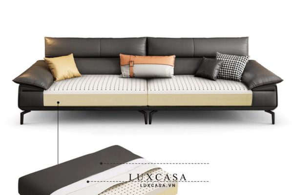 CHẤT LIỆU DA NHẬP KHẨU CAO CẤP, DỄ VỆ SINH:Luxcasa sử dụng chất liệu da nhập khẩu chất lượng cao (da công nghiệp, da thật tự nhiên) giúp bề mặt thoáng khí, luôn bền màu, dễ vệ sinh bề mặt, đa dạng chọn màu. Lớp đệm mút theo tiêu chuẩn Nhật Bản sản phẩm mang tới sự thông thoáng, bền đẹp.