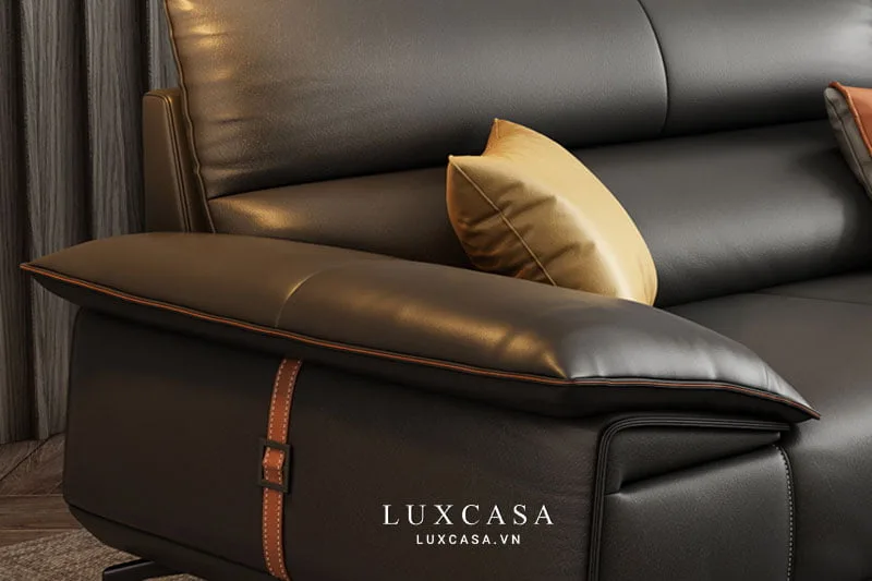 THIẾT KẾ VỚI ĐỘ THOẢI MÁI NHẤT ĐỊNH: Ngoài ra, khác với những mẫu ghế sofa da cao cấp của Luxcasa, mẫu SD604 có tay ghế được thiết kế với độ thoải nhất định, không chênh lệch chiều cao quá nhiều so với phần đệm ngồi. Do đó, bạn có thể dễ dàng dựa tay, ngả đầu trên thành ghế để thư giãn, nghỉ ngơi.