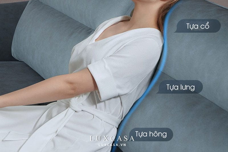 TỰA LƯNG CHIA LÀM 2 PHẦN có đường rãnh ở giữa mang đến điểm tựa lưng tạo sự thoải mái cho người ngồi.