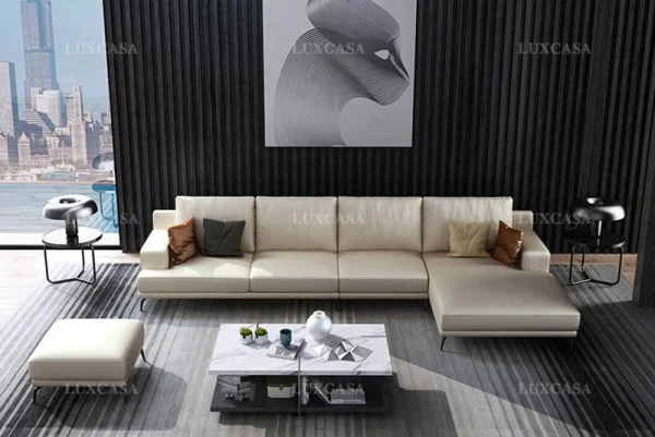 Sofa góc phủ da phong cách đơn giản SF0303 hiện đại dễ phối hợp với nhiều loại đồ nội thất khác nhau. Đơn giản, thoải mái, chất lượng là những lợi ích mà nội thất Luxcasa luôn hướng đến để phục vụ khách hàng tốt nhất.