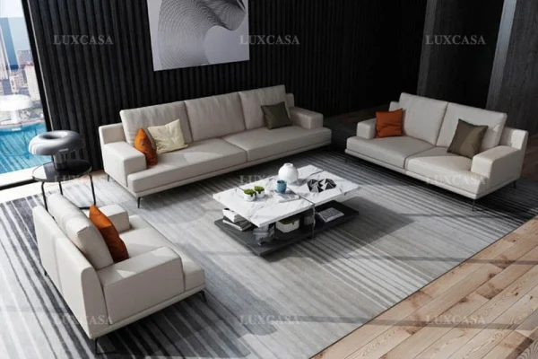 Sofa văng 3 chỗ ngồi kết hợp bàn trà đá hình chữ nhật