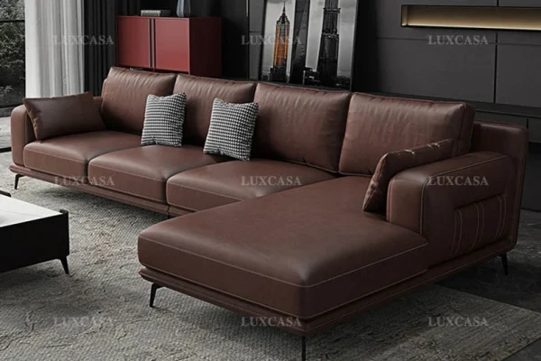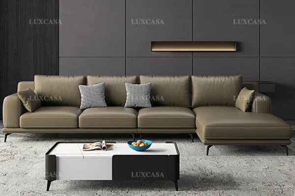 Sofa góc bọc da chất lượng cao SF304 mang vẻ đẹp hoàn hảo giúp hoàn thiện không gian nội thất của bạn và thể hiện gout thẩm mỹ riêng, cá tính. Mẫu ghế sofa phòng khách hiện đại của Luxcasa đang tô điểm cho nhiều không gian gia đình trên toàn quốc.