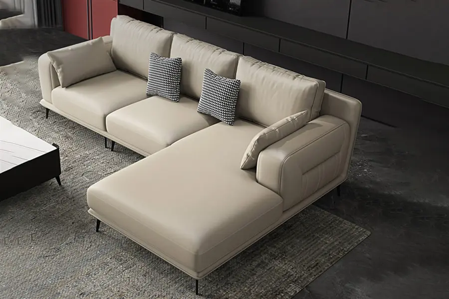 CHẤT LIỆU DA NHẬP KHẨU CAO CẤP, DỄ VỆ SINH công ty sử dụng chất liệu da nhập khẩu chất lượng cao (da công nghiệp, da thật tự nhiên) giúp bề mặt thoáng khí, luôn bền màu, dễ vệ sinh bề mặt mang đến vẻ đẹp trường tồn cho ghế sô pha hiện đại