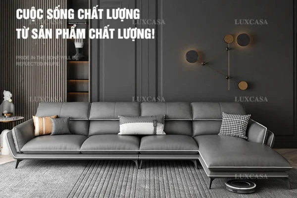 Sofa hiện đại kích thước lớnVới các phòng khách rộng hay không gian diện tích lớn sẽ cần các bộ sofa loại to như sofa góc SF310 để giảm bớt cảm giác trống trải và tạo điểm nhấn thu hút. Lưng tựa bản dày có bổ sung thêm đệm phần tựa đầu giúp người dùng thoải mái hơn.