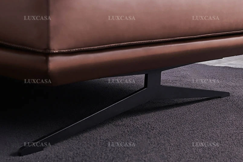 Sofa bọc da hiện đại kiểu mới SF311 với tay vịn dày, gối tựa tròn linh động tùy ý đặt. Kiểu dáng chân ghế đặc biệt: thay vì dùng các chân trụ tròn hoặc chân bản vuông thì tại mẫu sofa hiện đại này sử dụng chân chữ Y bằng thép cường lực làm tăng điểm cân bằng.