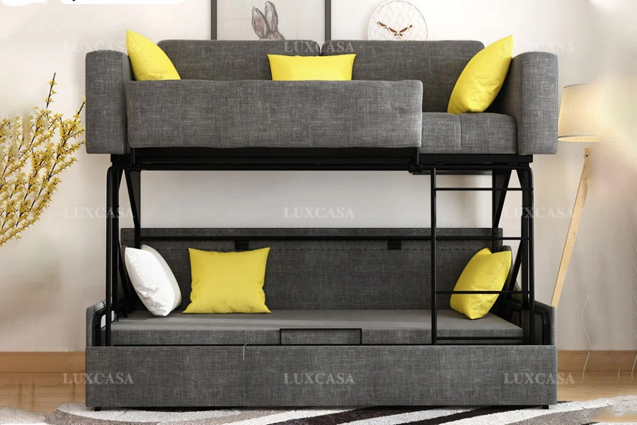 SOFA VĂNG ĐA NĂNG : Khi không sử dụng giường tầng bạn có thể thu gọn để trở thành hình dáng của sofa văng tiếp khách/ giường thư giãn khi cần.