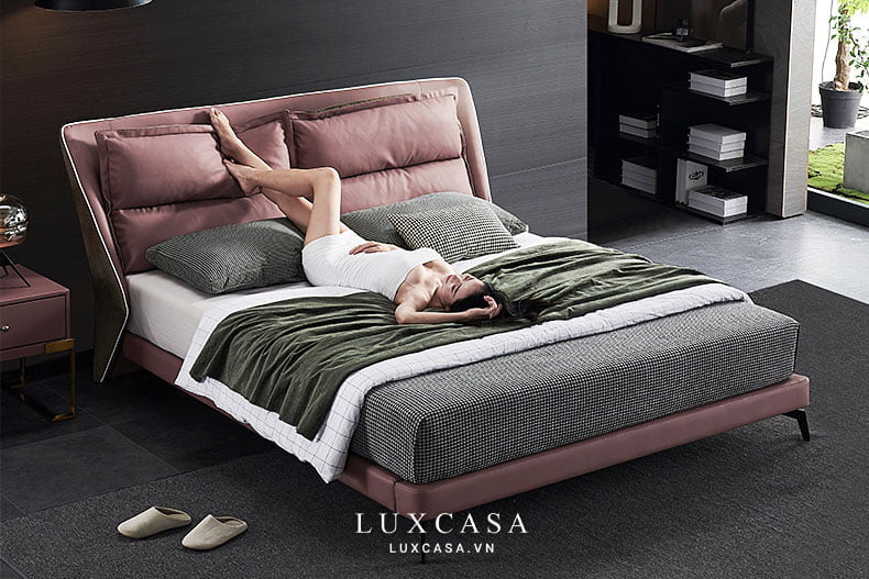 Giường da hiện đại GD0325 với chân hợp kim gầm cao dễ vệ sinh làm sạch. Gối tựa lưng tháo rời dễ dàng thay mới theo ý muốn. Showroom nội thất cao cấp LUXCASA chuyên trưng bày các mẫu giường bọc da, giường phủ vải, sofa, bàn trà, kệ tivi, giường tầng gấp, sofa kèm giường kéo đến nội thất thông minh.