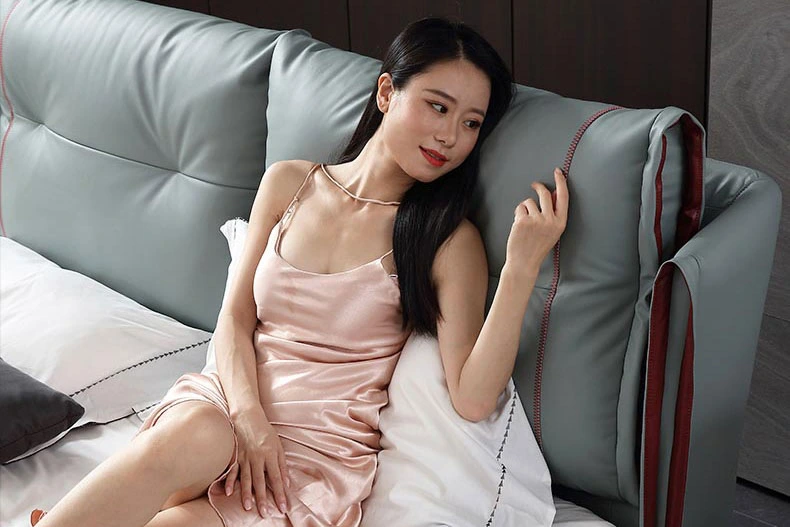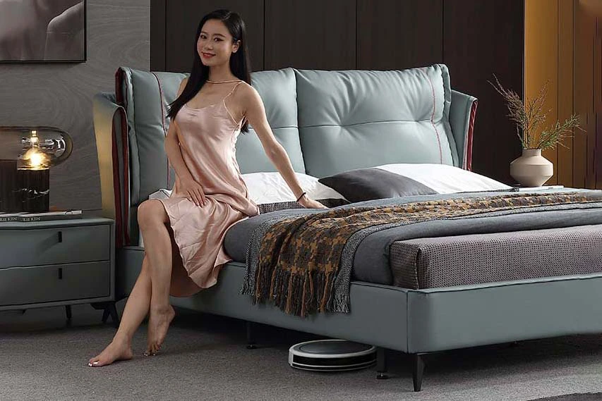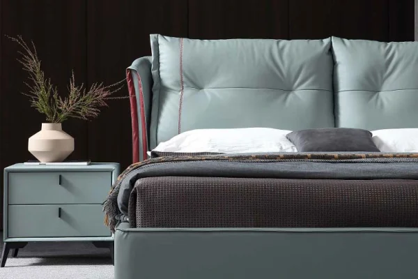Giường ngủ đôi phủ da hiện đại đơn giản