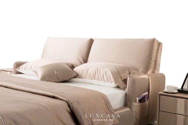 Giường bọc da GD406 với tựa lưng êm ái, dày dặn