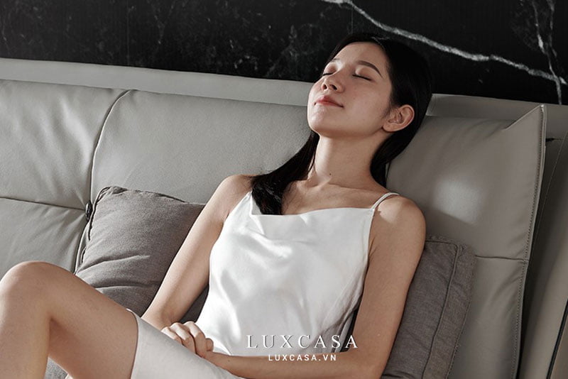 Với thiết kế đơn giản, gọn gàng phù hợp nhiều nhiều không gian và diện tích căn phòng. Với kiểu dáng hiện đại, phần tựa lưng rộng dày dặn được tạo điểm nhấn với các ô hình chữ nhật với đệm mút căng đầy có độ đàn hồi tốt tạo sự thoải mái khi khi sử dụng.