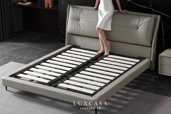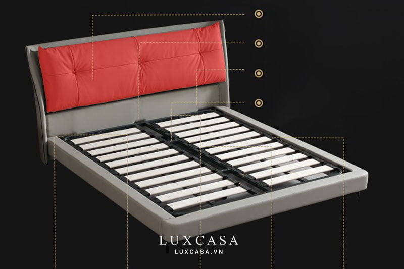 Khung giường và dát giường đều được làm từ chất liệu cao cấp, được chọn lựa kỹ càng từ những chuyên gia trong sản xuất. Khung giường bằng gỗ sồi ash nhập khẩu chống mối mot, dát giường làm từ khung sắt chịu lực chắc chắn.