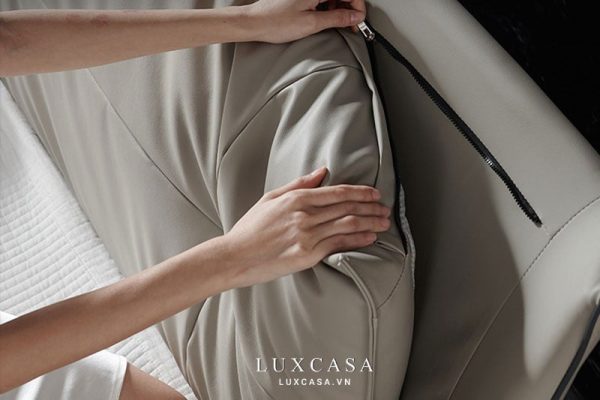 Được bọc bằng chất liệu da công nghiệp cao cấp có độ co giãn 4 chiều, bề mặt da dễ vệ sinh, thoáng khí. Ngoài ra sản phẩm còn có chất liệu da bò tự nhiên bền bỉ và tăng tính thẩm mỹ cho sản phẩm.