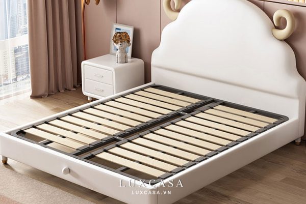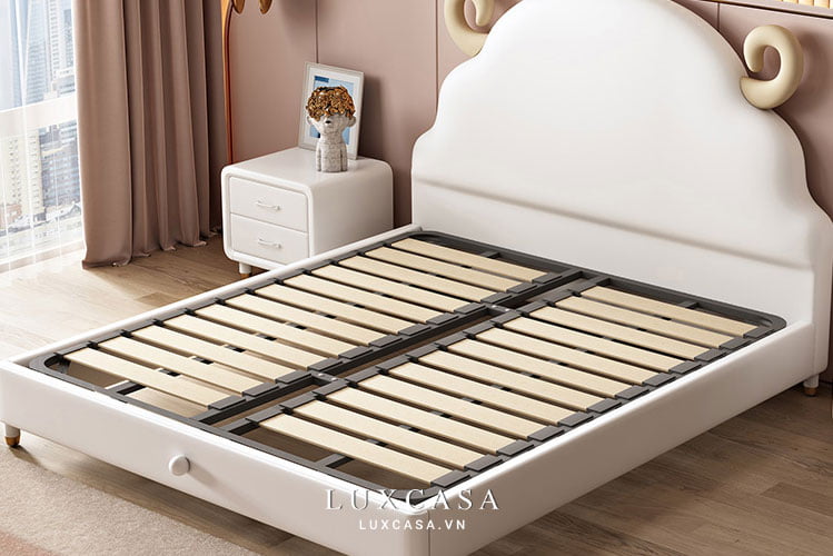 KHUNG GỖ SỒI TỰ NHIÊN CHẮC CHẮN: Các thanh nan giường và chi tiết gỗ đều là gỗ sồi tự nhiên nhập khẩu, được lựa chọn kỹ càng và xử lý chống mối mọt. Hệ các thanh nan cong kết hợp thép làm tăng khả năng chịu lực, giảm tình trạng lún giường.