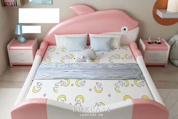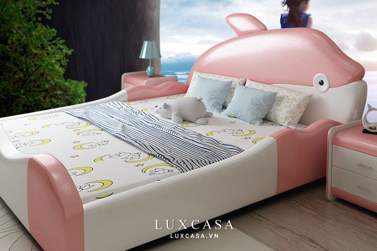 Điểm nhấn ghi điểm nhất của giường chính là kiểu dáng ngộ nghĩnh, phần đầu giường được tạo hình nguyên hình con cá. Màu sắc đa dạng phù hợp với cả bé trai và bé gái.
