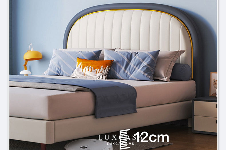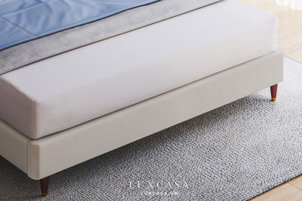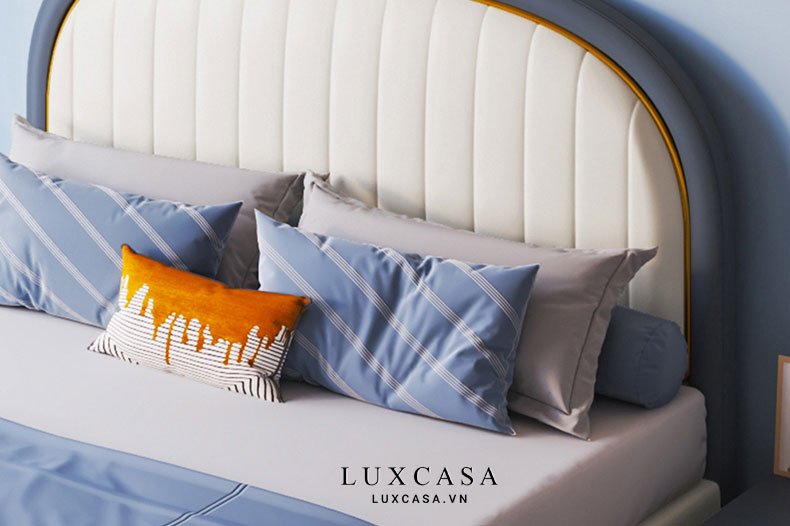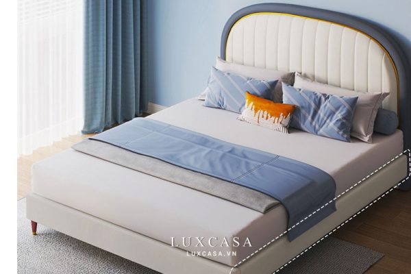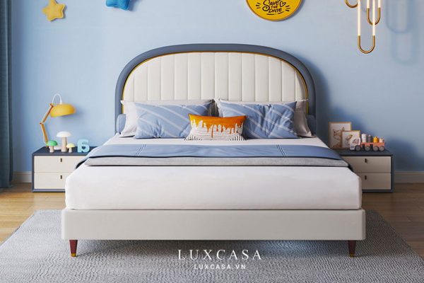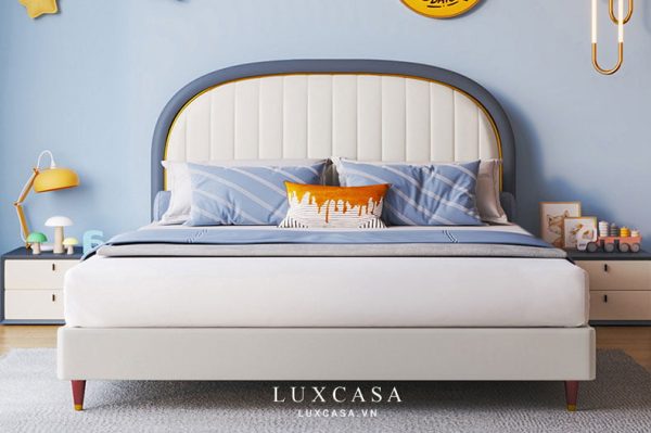 Tổng thể chiếc giường với tone màu xanh be phù hợp với nhiều phong cách thiết kế phòng hiện nay. Từng đường nét của chiếc giường được nội thất Luxcasa thiết kế bo trong, nhẹ nhàng, không dư thừa nên cực kỳ an toàn cho em bé.