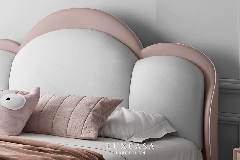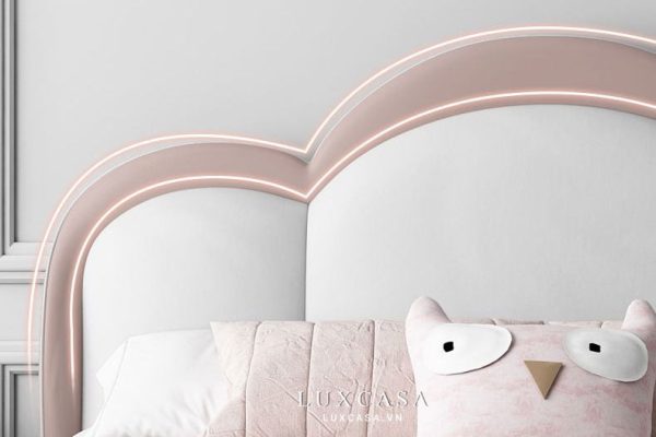 Tone màu hồng trắng nhẹ nhàng tổng thể chiếc giường tạo đã tạo được hiệu ứng nhẹ nhàng cho bé gái gay từ cái nhìn đầu tiên. Một cảm giác vô cùng bắt mắt với thiết kế gọn gàng, độc đáo cũng không kém phần dễ thương đã khiến cho căn phòng ngủ của bé lung linh hơn bao giờ hết.