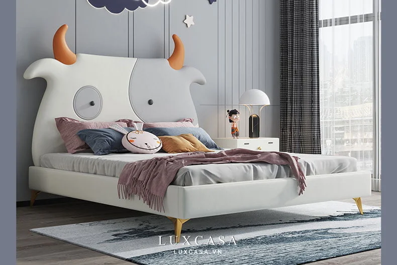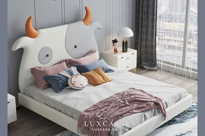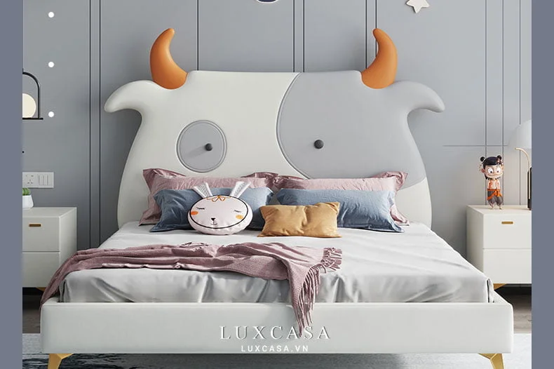 Điểm nhấn dễ nhận thấy nhất đấy chính là phần đầu giường ngủ trẻ em được thiệt kế với họa tiết dễ thương. Tone màu đa dạng phù hợp với nhiều không gian thiết kế nhiều gia đình hiện nay.