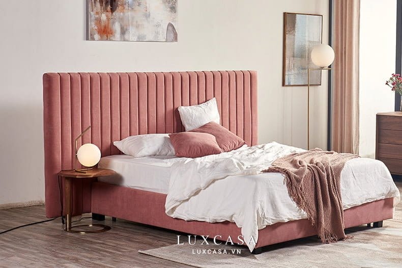 Để làm nổi bật sản phẩm, chúng tôi đã sử dụng gam màu hồng mộng mơ cho toàn bộ giường. Màu sắc này vừa đem tới cảm giác thông thoáng, vừa gợi lên sự năng động, cá tính cho không gian phòng ngủ. Gam màu hồng sáng phù hợp với nhiều phong cách thiết kế. Với gam màu này bạn có thể tùy ý lựa chọn màu sắc chủ đạo của không gian mà không lo lắng bố cục chung bị phá vỡ, không liên kết.