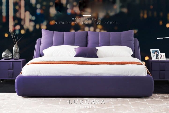 Giường vải nỉ với đa dạng màu sắc đang dần trở thành một xu hướng được ưa chuộng trong việc lựa chọn nội thất phòng ngủ. Tuy nhiên với để tìm ra sản phẩm phù hợp với không gian mỗi căn phòng thì bạn nên cân nhắc kỹ càng. Dưới đây LUXCASA sẽ giới thiệu tới quý khách hàng giường vải nỉ hiện đại màu tím GN109 mới hoàn thiện.