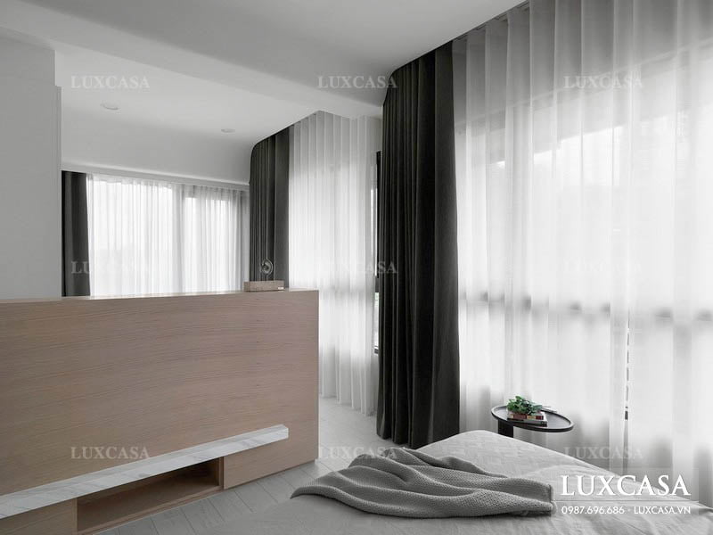 Điểm nhấn của căn phòng là những chiếc rèm vừa giúp trang trí phòng ngủ vừa giúp che bớt ánh sáng khi nghỉ ngơi. Không gian thoáng đãng, nội thất màu sắc nhẹ nhàng trong phòng ngủ chắc chắn sẽ là nơi nghỉ ngơi lý tưởng giúp bạn xua tan mệt mỏi sau ngày dài học tập và làm việc.