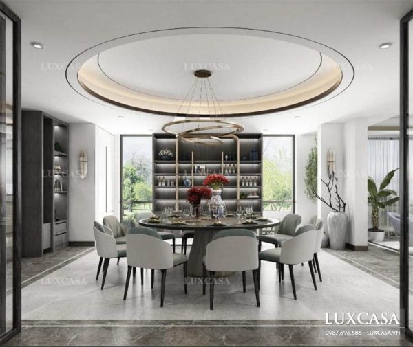 Sự sáng tạo, mắt thẩm mỹ của nhà thiết kế được thể hiện trong cách sử dụng, bày trí đồ nội thất cũng như sự kết hợp hoàn hảo giữa các gam màu. Với ý tưởng thiết kế phòng khách biệt thự hợp phong thủy mà không rườm rà giúp tận dụng được tối đa diện tích phòng khách một cách hiệu quả.