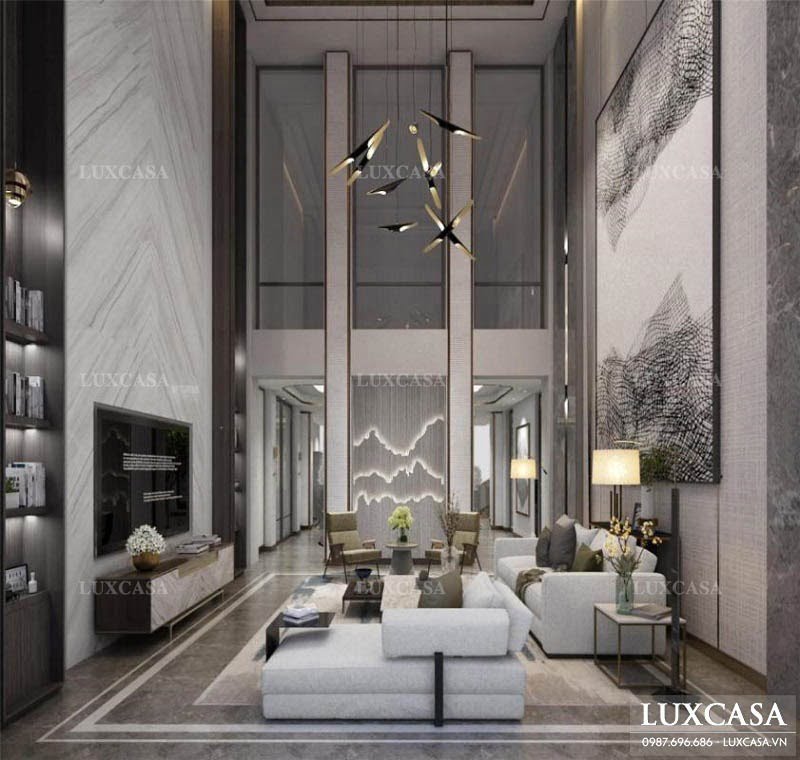 Phòng khách nhà biệt thự riverside thiết kế dạng thông tầng