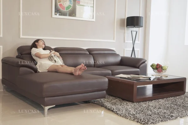 Sofa chữ L bọc da SD121 hiện đang sở hữu phong cách thiết kế hiện đại với những đường thẳng và các góc bo tròn mềm mại. Phần tựa lưng có góc nghiêng 30 độ với hai phần tựa lưng – cổ riêng biệt giúp quý khách có được một tư thế dựa lưng thoải mái.