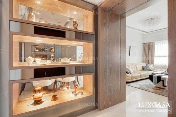 Tủ trưng bày bằng gỗ giúp phân chia không gian