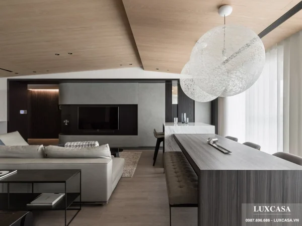 Thi công hoàn thiện căn hộ đẳng cấp tiện nghi với nội thất gỗ Laminate nhập khẩu sang trọng. Công ty Luxcasa chuyên thực hiện cải tạo, đổi mới phong cách các không gian nhà ở, biệt thự, chung cư, căn hộ penthouse, duplex theo yêu cầu
