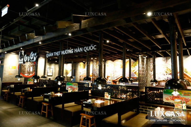 Thi công nhà hàng thịt nướng Hàn cần thể hiện đặc trưng món chính và phong cách văn hóa của xứ kim chi. Nếu chưa có kinh nghiệm thi công nhà hàng Hàn, các chủ đầu tư có thể liên hệ với các đơn vị thiết kế thi công nội thất chuyên nghiệp. Luxcasa với nhiều năm kinh nghiệm triển khai thực hiện nội thất nhà hàng Hàn Quốc sẽ là người bạn đồng hành tuyệt vời của khách hàng.