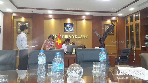 Với quy mô của một tập đoàn lớn, số lượng nhân viên đông được chia thành nhiều bộ phận. Do đó việc thiết kế xây dựng văn phòng phải đảm bảo tiết kiệm không gian nhất có thể. Luxcasa đã thực hiện dịch vụ thi công nội thất văn phòng tập đoàn Vietthang chuyên nghiệp, hiện đại để đáp ứng được nhu cầu của khách hàng.