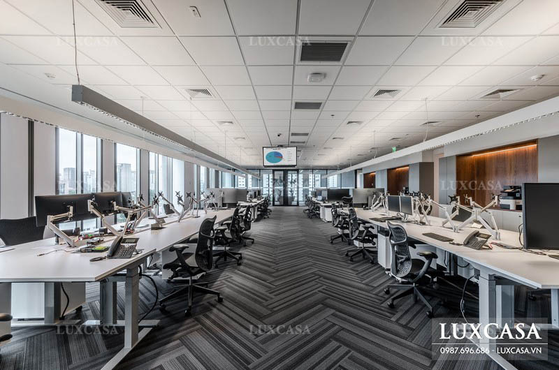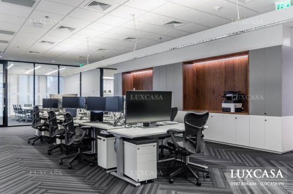 Hạng mục tiếp theo Luxcasa nhận thi công là khu vực làm việc chung của các nhân viên trong công ty. Tất cả mọi người sẽ làm việc chung trong một không gian, không có vách ngăn.