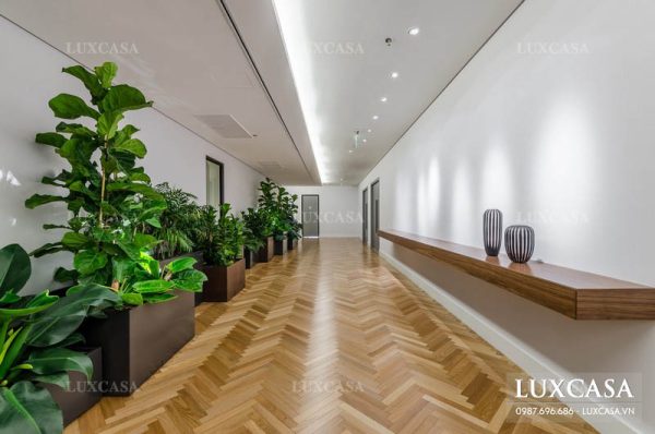 Để tạo ra không gian làm việc thân thiện với tự nhiên, công ty đã yêu Luxcasa bố trí thêm những mảng xanh tự nhiên trong văn phòng.