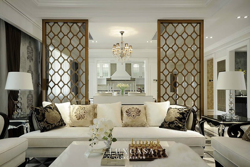Vách ngăn với ô quả trám phù hợp cho không gian tân cổ điển