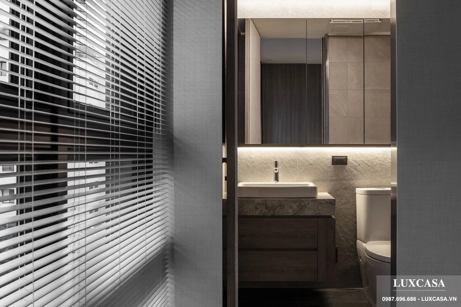Phòng tắm, vệ sinh được đặt trong phòng ngủ Master và 1 phòng chung. Sàn gạch ốp vân đá dễ thoát nước, tủ đồ nhiều ngăn, bố trí các thiết bị thuận tiện tiện sử dụng