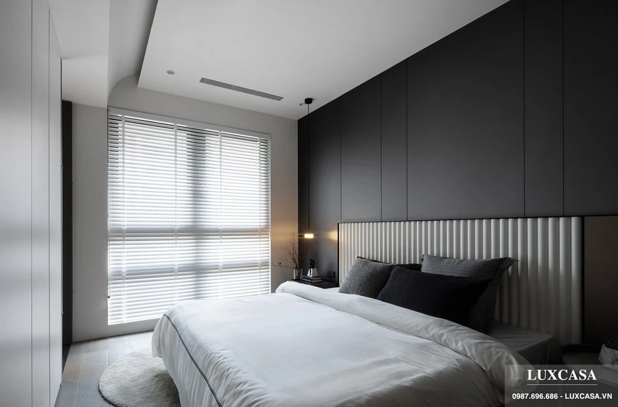 Tất cả các phòng ngủ của chung cư sang trọng đều sử dụng điều hòa thông gió âm trần, đèn chiếu sáng gắn tường để tối ưu khoảng trống, tránh cản trở tầm nhìn.