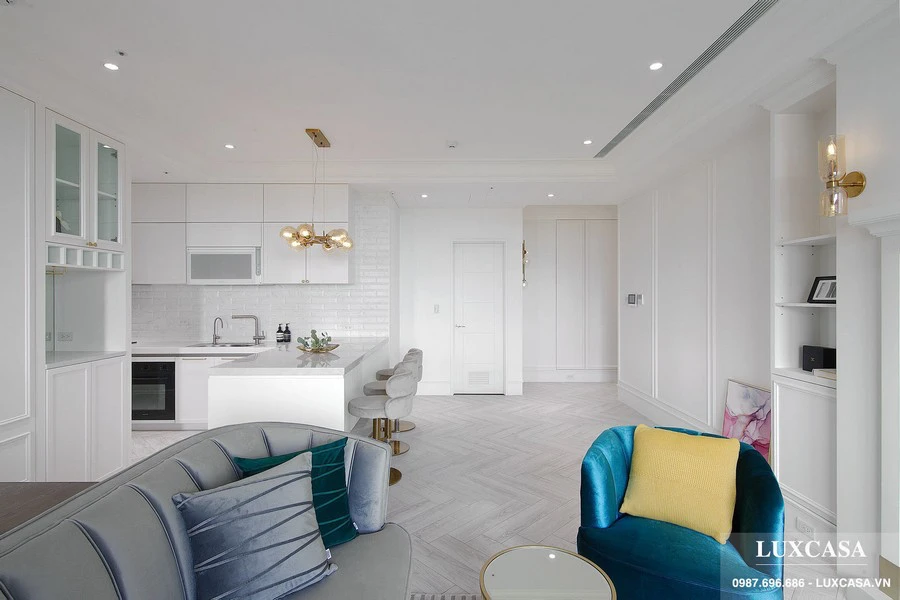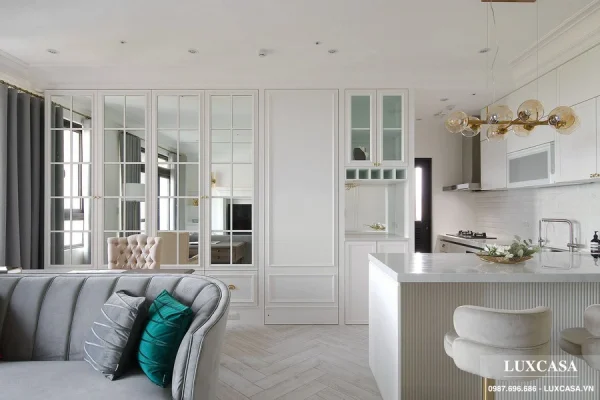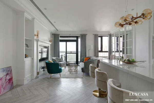 Thiết kế chung cư tân cổ điển cao cấp 130m2 gỗ tự nhiên hướng đến nét sang trọng quý phái. Chất liệu gỗ Ash mang đến màu sắc khác biệt, chất lượng hoàn hảo của đồ dùng. Hãy cùng LUXCASA khám phá nhé.