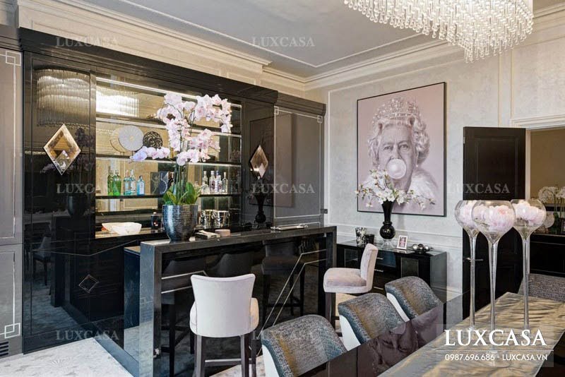 Bố trí quầy bar nhỏ trong phòng ăn biệt thự