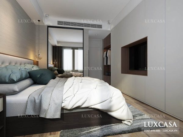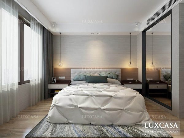 Đơn giản, tiện nghi chính là những từ ngữ có thể miêu tả về phòng ngủ này. Đơn vị thi công đã sử dụng những gam màu nhẹ nhàng để cho bạn có được giấc ngủ thoải mái nhất. Điểm yêu thích nhất thiết kế thi công phòng ngủ này đó chính là cửa sổ lớn có thể đón ánh sáng mặt trời cùng những làn gió mát lành vào trong phòng.