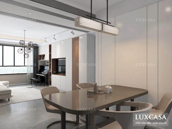 Phòng khách liền bàn ăn giúp chung cư rộng hơn