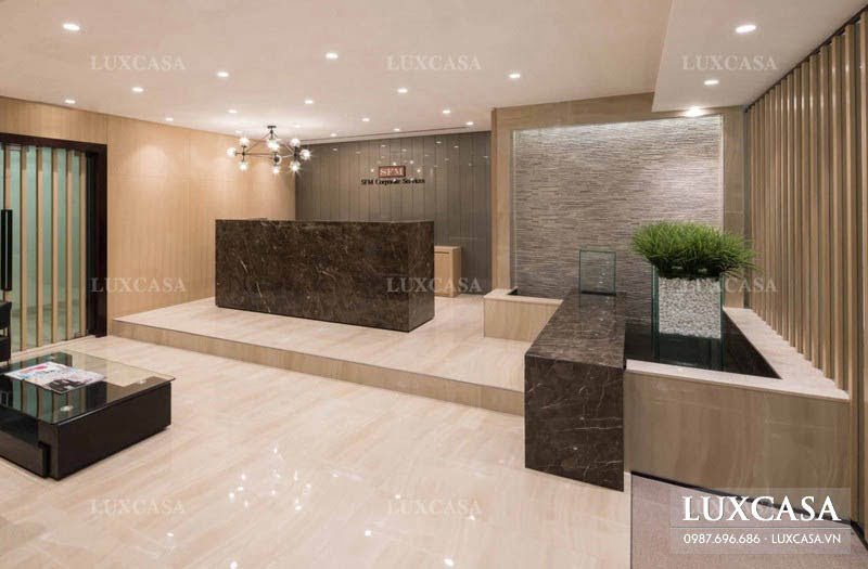 Mẫu thiết kế bàn lễ tân công ty ốp đá cao cấp