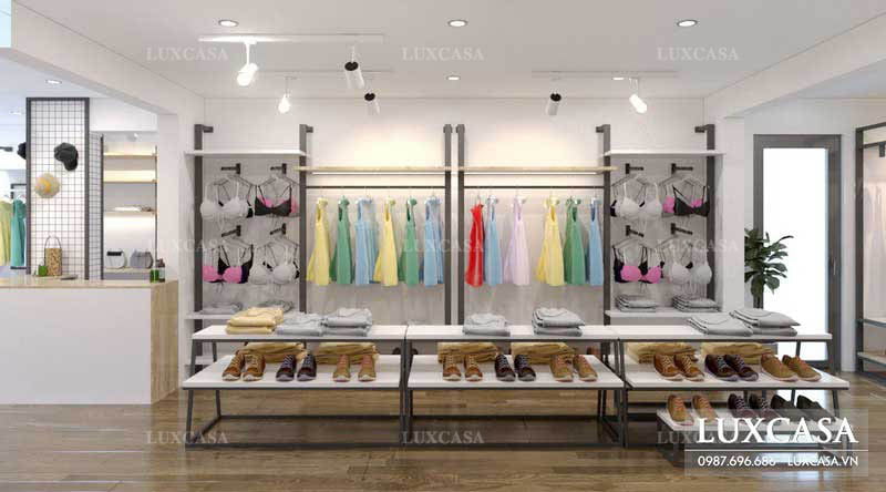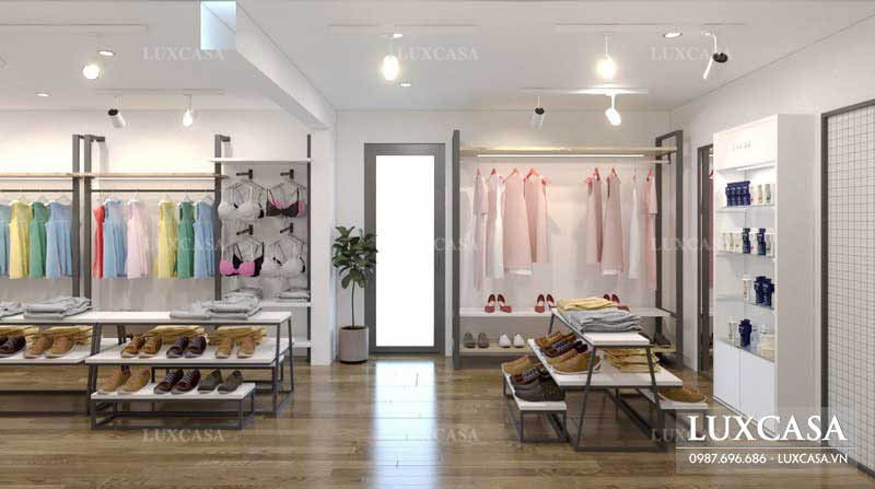 Với các sản phẩm là quần áo thì bạn nên treo chúng lên các mắc áo để người mua có thể dễ dàng lựa chọn. Bên cạnh đó thì với mỗi không gian bạn nên bố trí những màu sắc và ánh sáng khác nhau để tạo nên thương hiệu riêng của cửa hàng.