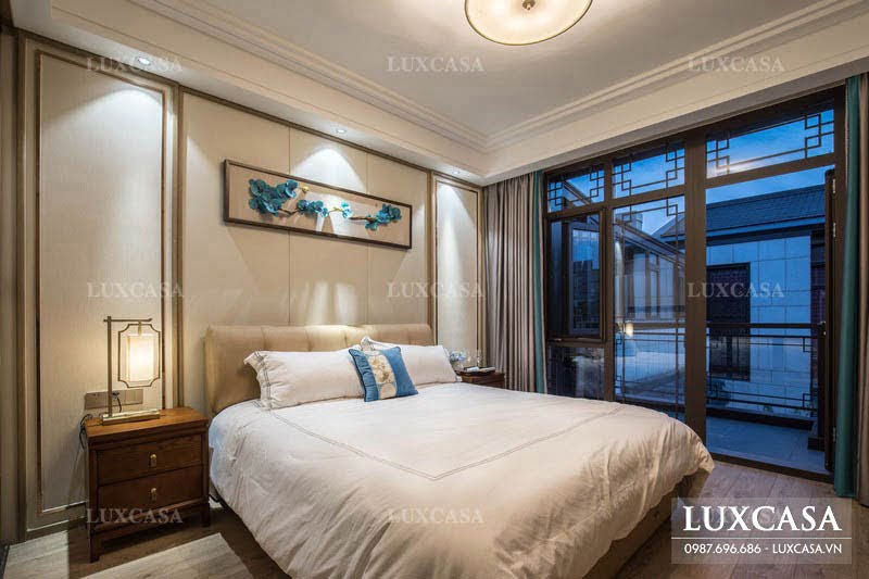 Thiết kế nội thất biệt thự nhà phố theo phong cách Á Đông thể hiện trong một thiết kế phòng ngủ