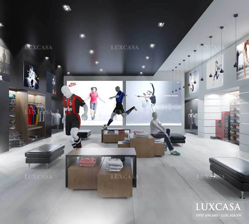 Luxcasa cung cấp dịch vụ thiết kế shop đồ thể thao 50m2 uy tín, chất lượng