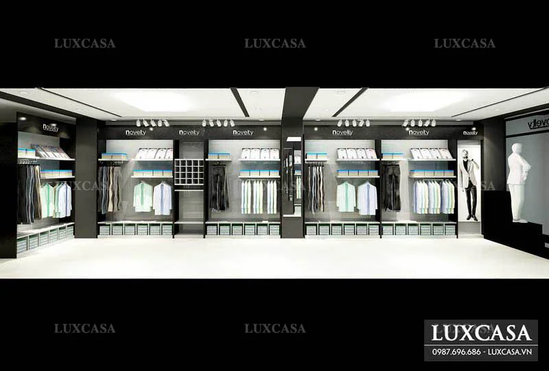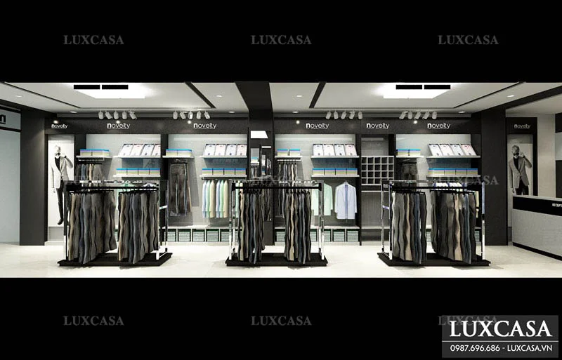 Khi thiết kế thi công shop quần áo nam Novelty, đội ngũ kiến trúc sư Luxcasa mong muốn mang đến cho khách hàng một không gian sang trọng, sáng sủa và thời thượng. Vì thế, họ đã áp dụng những ý tưởng như sau: