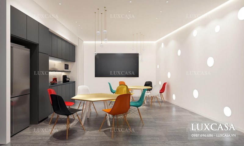 Trang trí thi công phòng nghỉ nhiều màu sắc