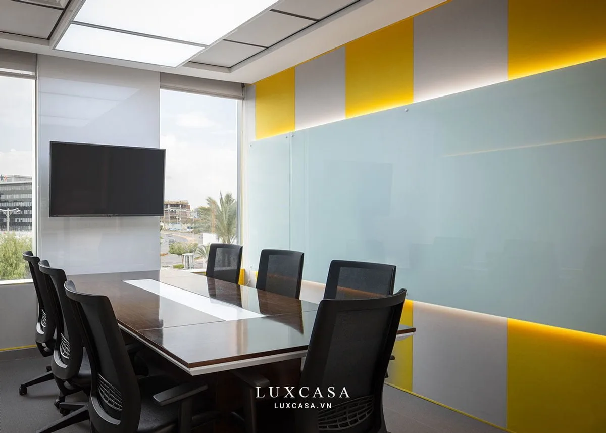 Không gian phòng họp được trang bị hệ thống đèn hiện đại