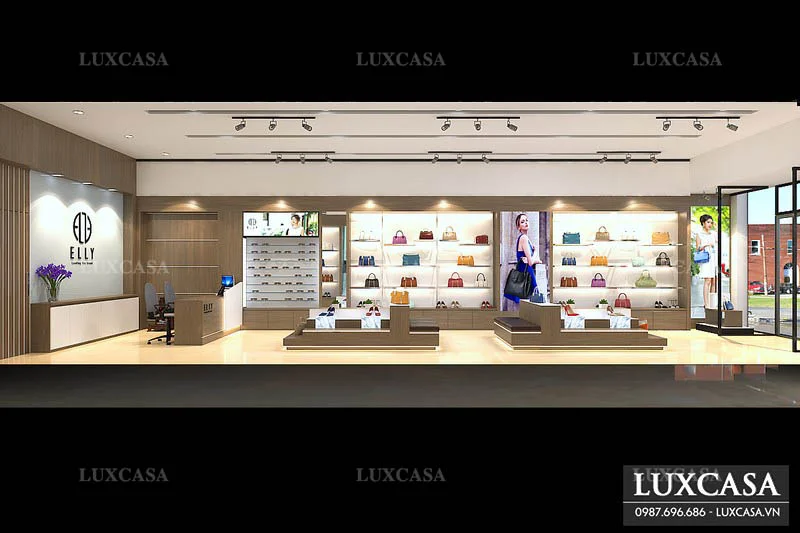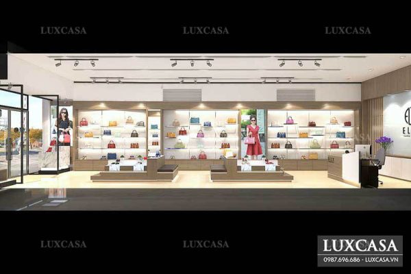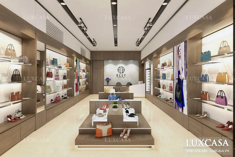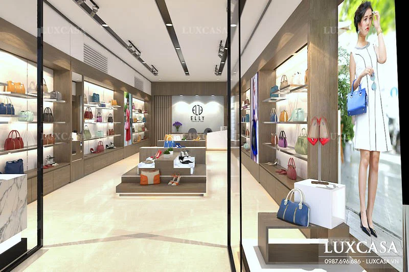 Phụ kiện thời trang luôn đa dạng về màu sắc, thương hiệu và thể hiện sự đẳng cấp của người dùng. Việc thiết kế không gian trưng bày sản phẩm gọn gàng, thẩm mỹ theo chủ đề, thương hiệu sẽ là điều kiện mang đến sự thành công cho đơn vị kinh doanh mặt hàng này. Dưới đây, chúng tôi chia sẻ mẫu thiết kế thi công Showroom thời trang mặt hàng túi xách, giày dép đẹp, ấn tượng của Elly do Luxcasa hoàn thiện.