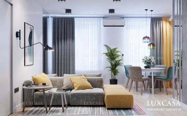 Hãy chọn trang trí đồ vật theo phong cách hiện đại. Các món đồ có màu sắc nhẹ nhàng, đơn giản và tươi sáng. Những chiếc rèm cửa, cửa kính sẽ phù hợp với diện tích 50m2. Bởi rèm cửa kính vừa tạo điểm nhấn ngôi nhà vừa tăng diện tích căn phòng. Đây còn là cách lấy ánh sáng từ tự nhiên tốt nhất. Giúp căn hộ của bạn sáng và thoáng hơn.